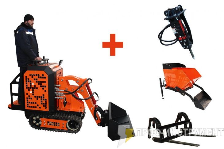 Многофункциональный мини-погрузчик поможет решить широкий спектр задач благодаря навесному оборудованию. Вы можете дополнительно приобрести гидромолот.