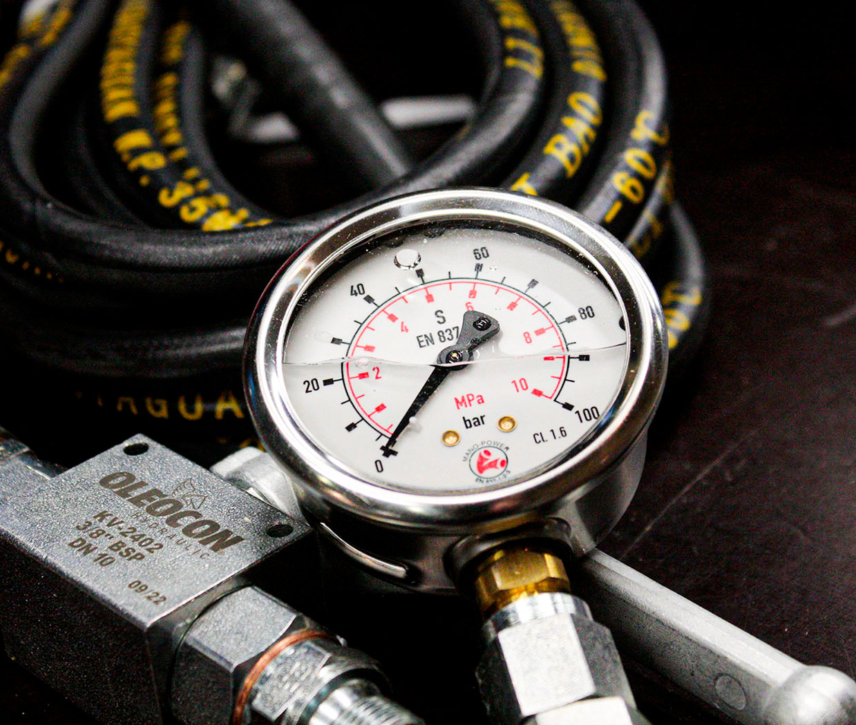 Его конструкция обеспечивает надежную работу в течение продолжительного времени, т.к. все детали его гидравлической системы изготовлены из нержавеющих материалов, а клапаны всасывания и нагнетания защищены от попадания грязи при всасывании и сливе рабочей жидкости. Постоянство давления в испытываемой системе обеспечивается двумя клапанами и вентилем с шаровыми запорами.