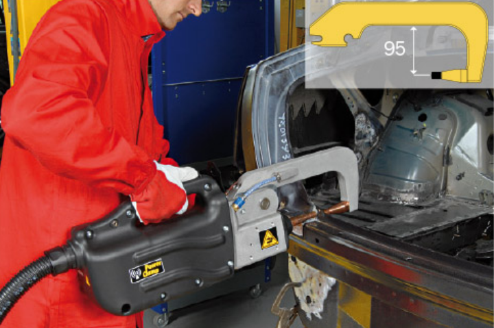 Технология POWER CLAMP позволяет осуществлять точечную сварку с использованием более высокого тока, снижая при этом потребляемое электричество, использовать намного более длинные (5м) и легкие кабели, упрощая выполнение работ и расширяя рабочую зону, сохраняя при этом магнитные поля вокруг кабелей на минимальном уровне. Автоматическое управление давлением позволяет оптимально регулировать силу, прилагаемую к электродам зажима. Аппарат укомплектован зажимом, охлаждаемым водой и тележкой.