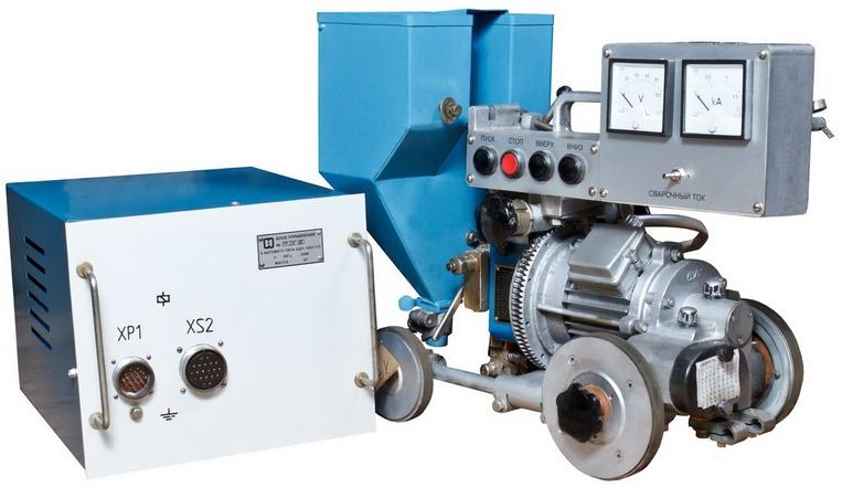Автомат сварочный предназначен для сварки под слоем флюса соединений встык с разделкой и без разделки кромок, для сварки угловых швов вертикальным и наклонным электродом, а также нахлесточных швов. Швы могут быть прямолинейными и кольцевыми. Автомат в процессе работы передвигается по изделию или по уложенной на нем направляющей линейке. Поставляется с блоком управления для источника питания типа ВДУ-1202 или ТДФЖ-1002.