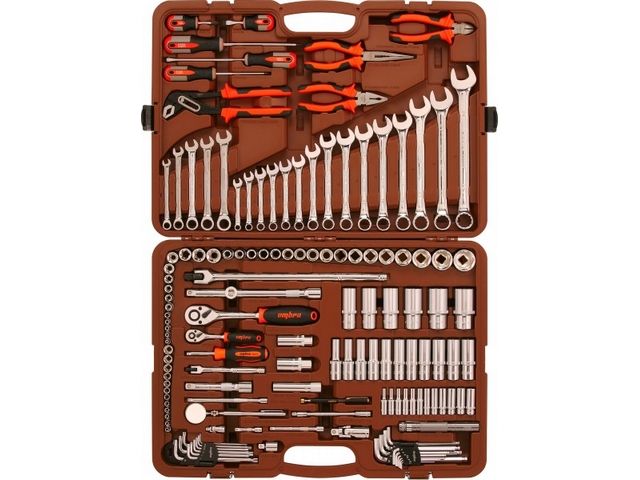 Профессиональный набор инструмента, выполненный из высокопрочной хромованадиевой стали.